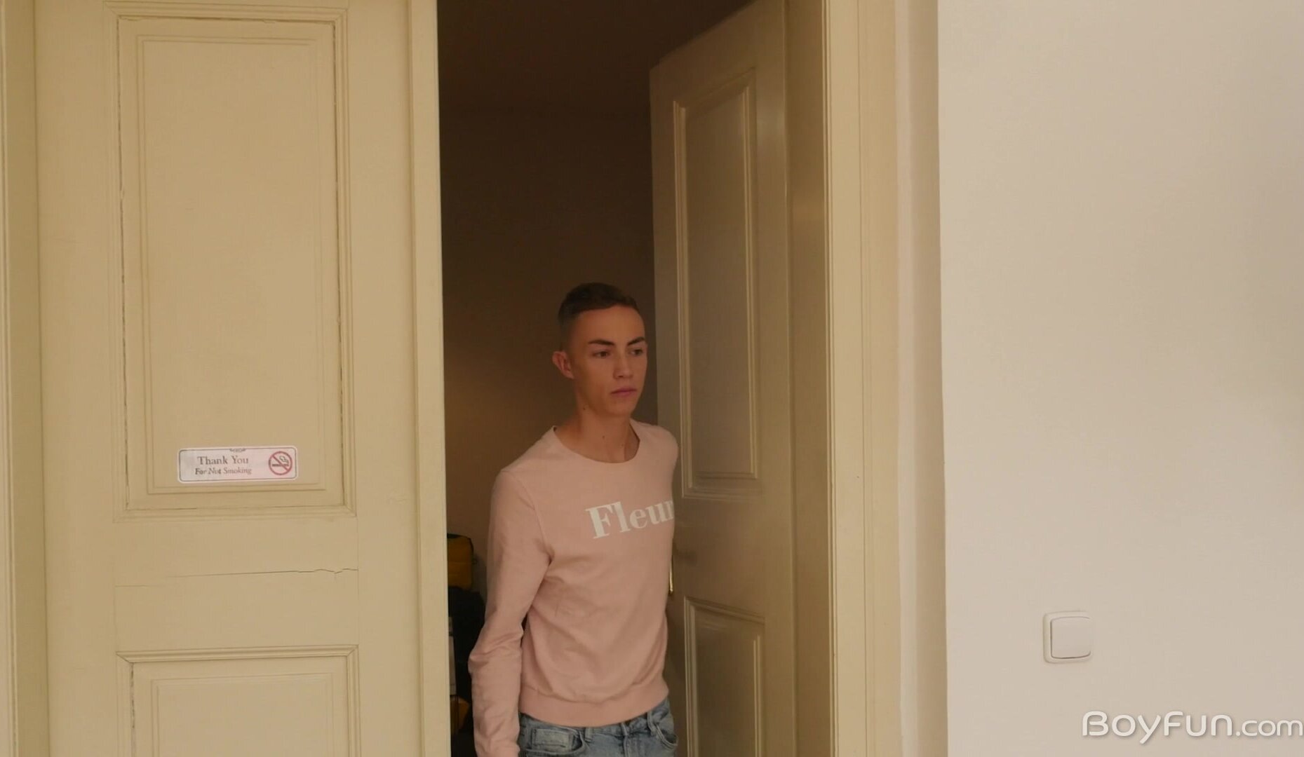 Boys will be boys, and right now horny boy Vitali Kutcher is enjoying his own cock in the bedroom, stroking his hard young dick and working on getting the creamy goodness pumping from his glistening tip. Of course, any horny boy like him would love to have some company while working on his jizz load, and he gets exactly that in the form of sexy and slim you BoyFun favorite Nick Danner. The young man has been roaming around the city seemingly lost, but it's a good thing he didn't stop to ask some hunky local for directions and lose his load before stumbling across this horny masturbator in the middle of his "me time". Nick just strolls right in to catch sexy young Vitali rubbing his boner on the bed, apologizing for the intrusion but quickly accepting the invitation to suck on his pole. Vitali is so happy for the company, feeding the slim arrival his rigid length and sucking on his new friend's equally tasty shaft in return. The loving cock adoration picks up pace as the boys move around the room, licking and sucking their new best friend with the kind of hunger you would expect from two incredibly cum-laden boys. Nothing could possibly stop them or interrupt their mutual pleasure, especially not when Nick offers his new pal his snug rump to slide that naked pole into. Vitali eases his tip into Nick's pucker, following it with every inch of his steel-like shaft, humping his length in and out while Nick wanks himself off and moans with appreciation. Taking pole position, our slim little bottom twink hops up and slides down onto that deliciously rigid dong, his heavy balls hanging between his thighs while he rides his buddy, their moans of pleasure growing in volume. With their cum loads very nearly ready to splash Nick lays back and lets Vitali steer them both to their messy finish, giving his boy some final deep thrusts before pulling out and splashing his juicy mess over the boy's smooth and pale body. Nick isn't far behind, unleashing a big splashing eruption of semen as his climax flows through his slender frame.