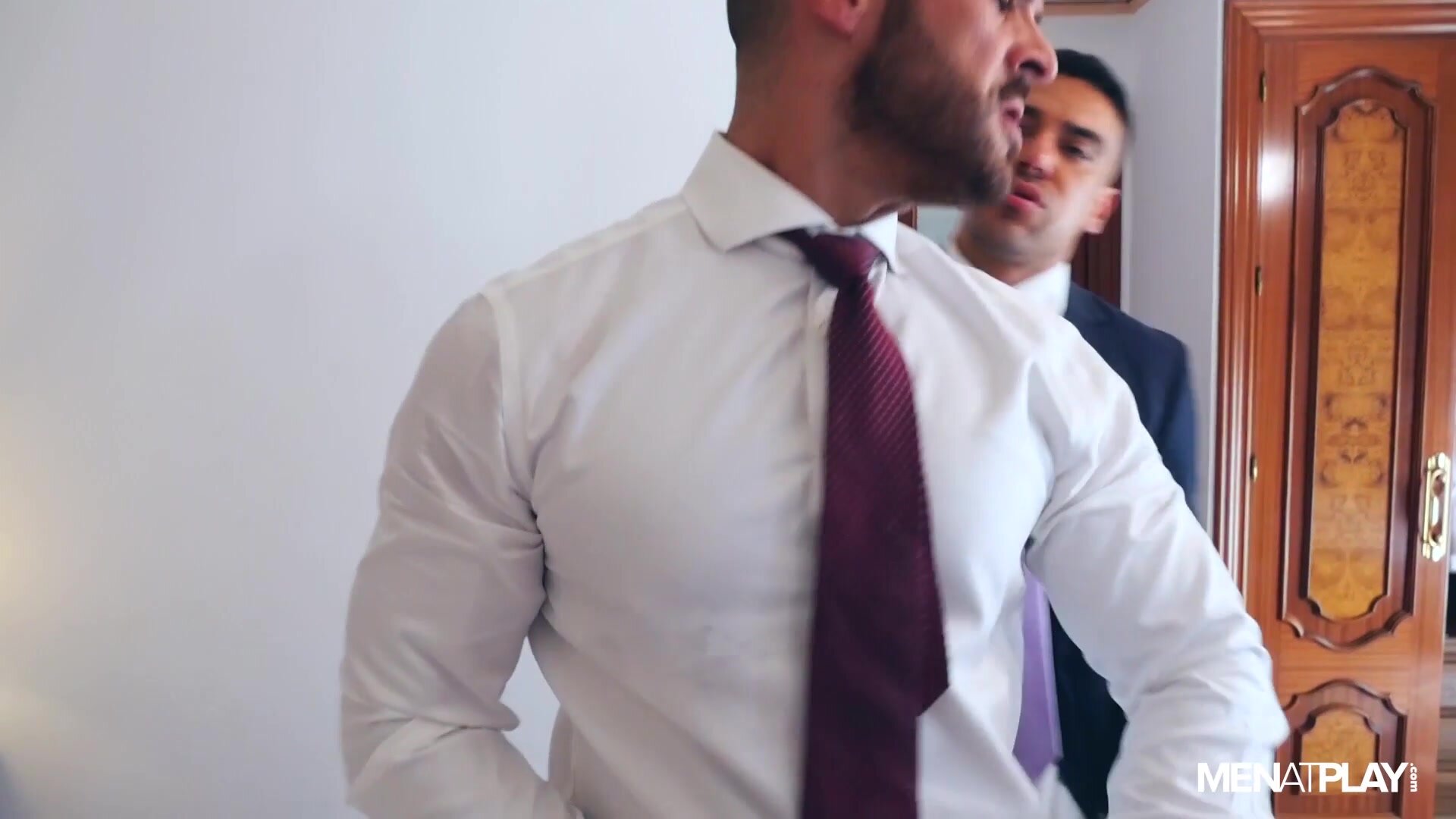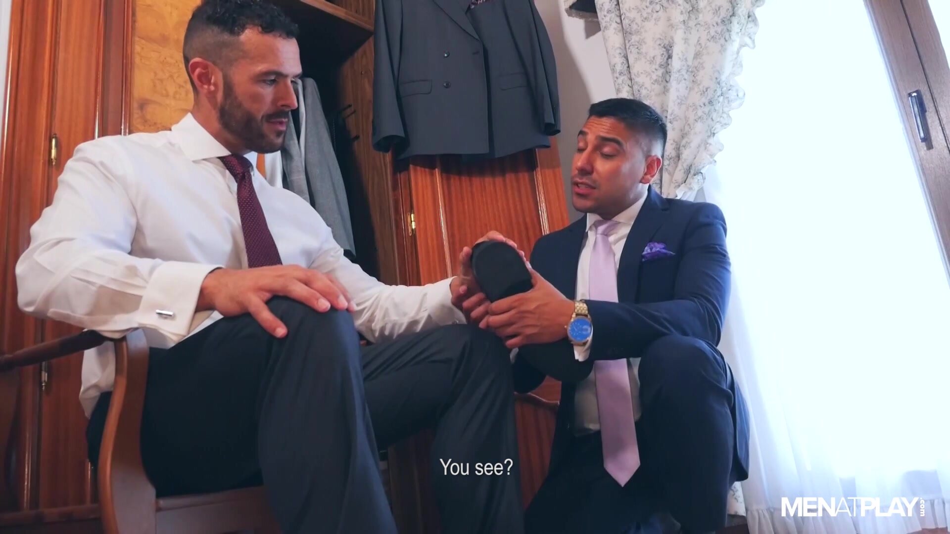 Checking in on Denis, Salvador catches him red-handed but he likes what he sees! Salvador helps the day laborer get fully suited and when he gets to put on the shoes, he can’t control himself any longer. Already on his knees, Salvador takes Denis’ cock hungrily and then rips the suit pants to reveal a hairy ass ready to be fucked.
