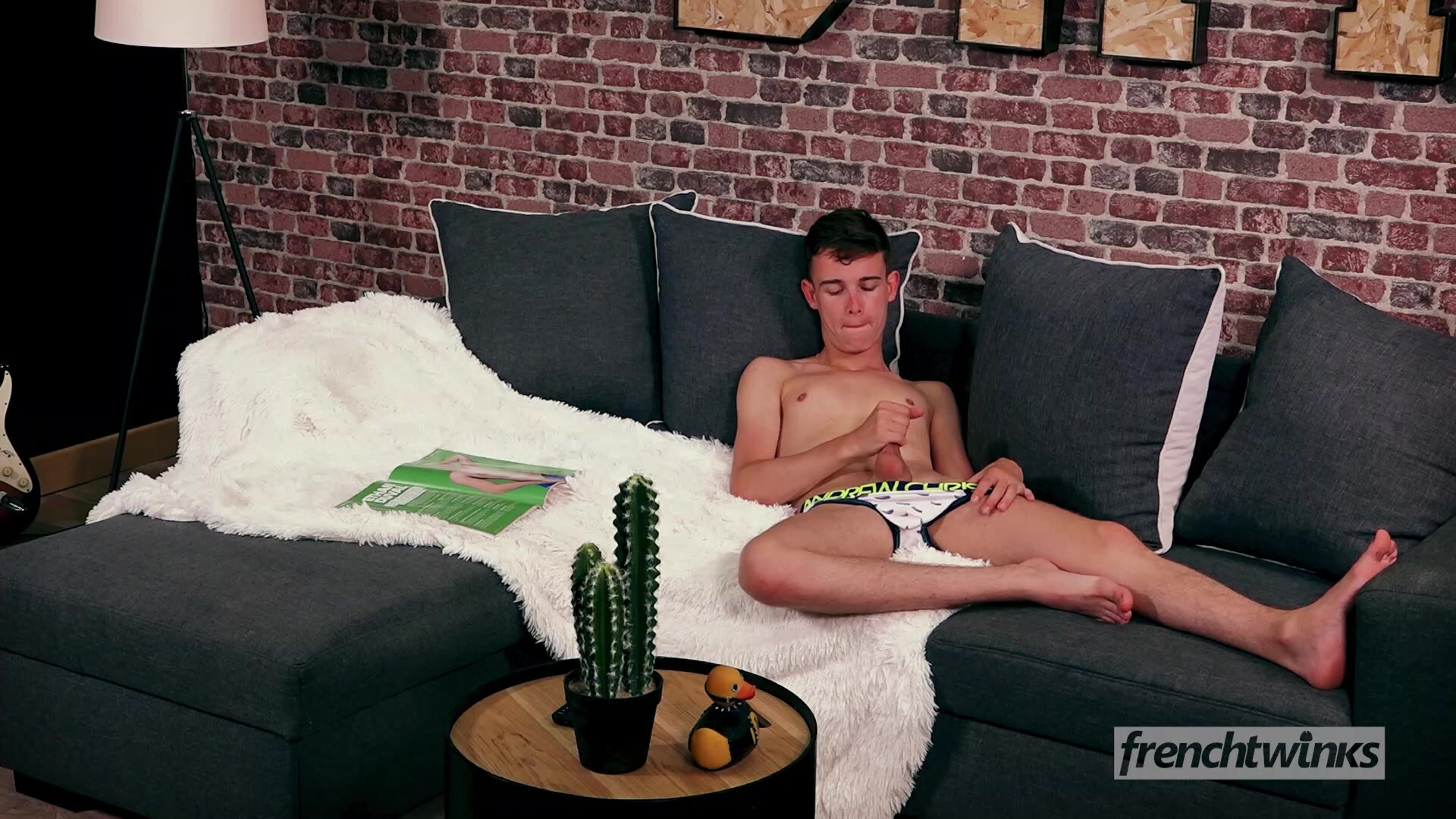 Description: (Ethan Duval, Lucas Bouvier). Relaxing on the living room couch, Ethan reads the special sex edition of "Boy Magazine" and the sight of these naked bodies warms his mind. The young twink turns on the TV to watch a porn movie and starts to masturbate. Ethan is hard and starts fingering his ass while moaning. More and more excited and dilated he grabs a dildo and sinks into his anus and starts deep and fast back and forth. After a hard day's work, Lucas is very stressed and when he suddenly arrives in the living room, the vision of his friend jacking off while he drudges at work puts him out of his way. The opportunity is perfect to inflict a good punishment to Ethan and the dominant Lucas will take a sadistic pleasure! Lucas first ties Ethan's wrists, then blinds his eyes and puts a leather collar around his neck. Now on a leash and totally submissive to his master, Ethan, gets on his knees and sucks Lucas' fat cock greedily. The domination game is more and more intense and Lucas whips his submissive before giving him a memorable spanking. Ethan's buttocks blush under the slaps and his screams echo in the room. Lucas plays with the twink's little hole, spits in, then he introduces the dildo unceremoniously. The back and forth are brutal and Ethan moaned loudly. Lucas then thrusts a gag in Ethan's mouth to quell his cries and he fucks him wildly. The twink shared between pain and pleasure is brutally pounded and domination session will end with a thick facial cumshot.