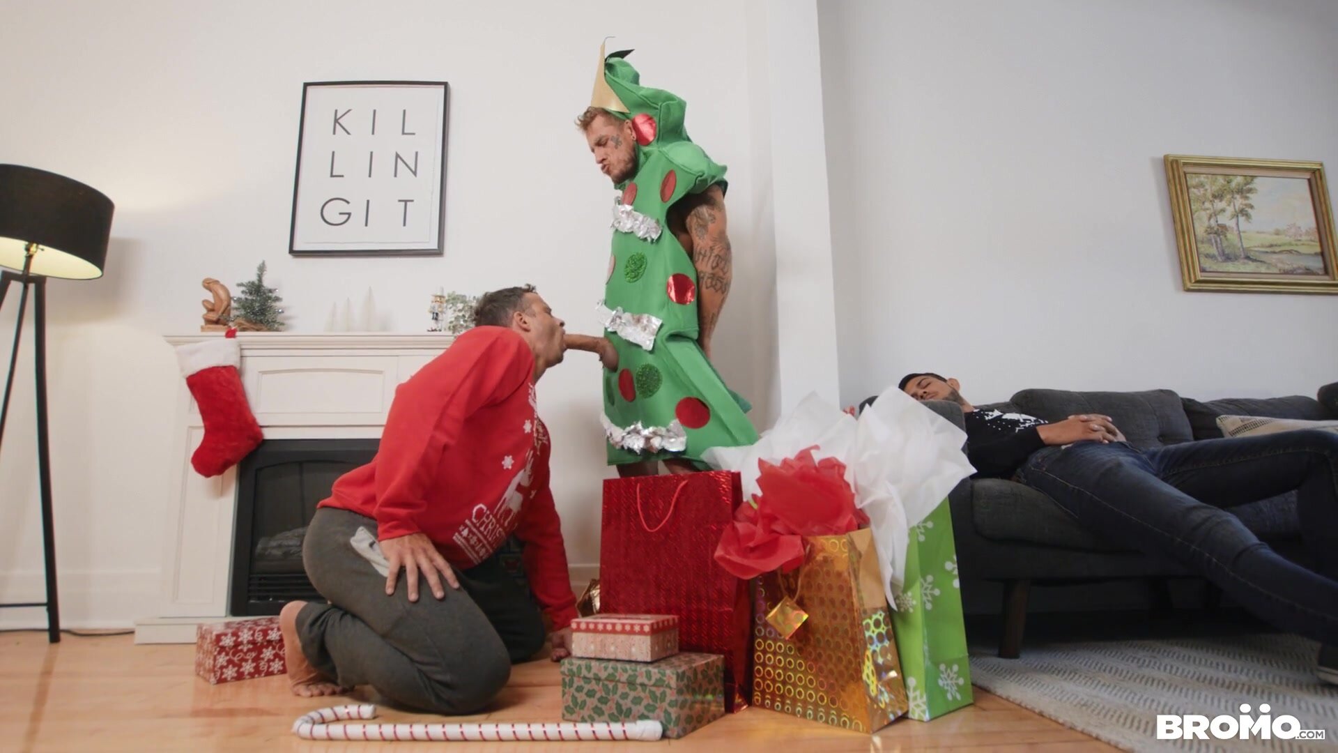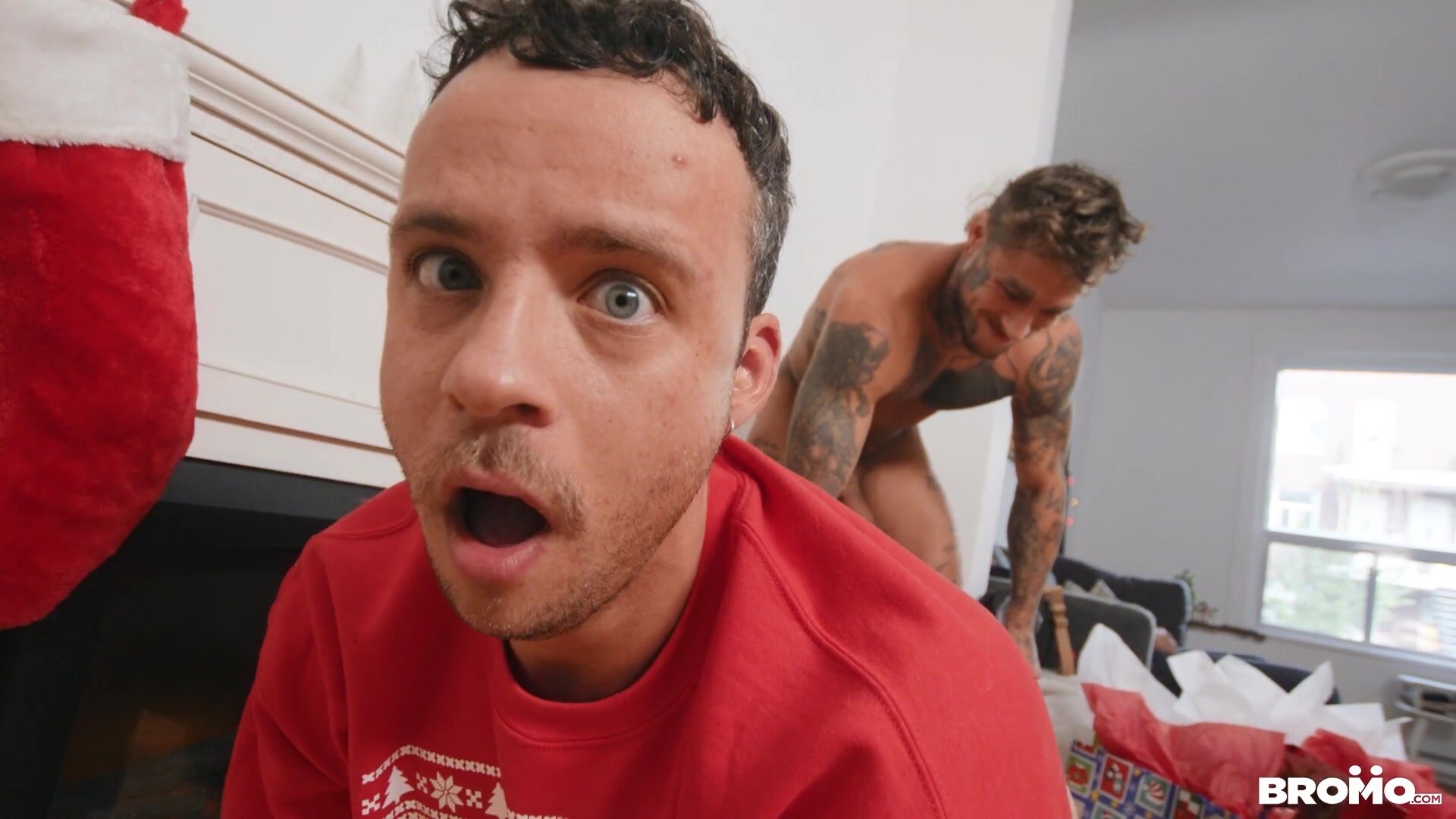 All Nate Grimes wanted for Christmas was to get wrecked, so when his BF conks out on the couch instead of dicking him down under the tree, he prays for a miracle. Nate's wish is granted when his Christmas tree transforms into Bo Sinn, boasting a very special ornament for Nate to play with! Nate sucks that huge cock, deepthroating it and sucking the top's balls. He promises to be very good, so Bo makes his special Christmas wish come true, fucking him with a candy cane decoration and a collection of dildos Nate finds under the tree, each one bigger than the last. Bo fists the bottom before he destroys Nate's hole with his massive North Pole and fills him with a Christmas creampie!