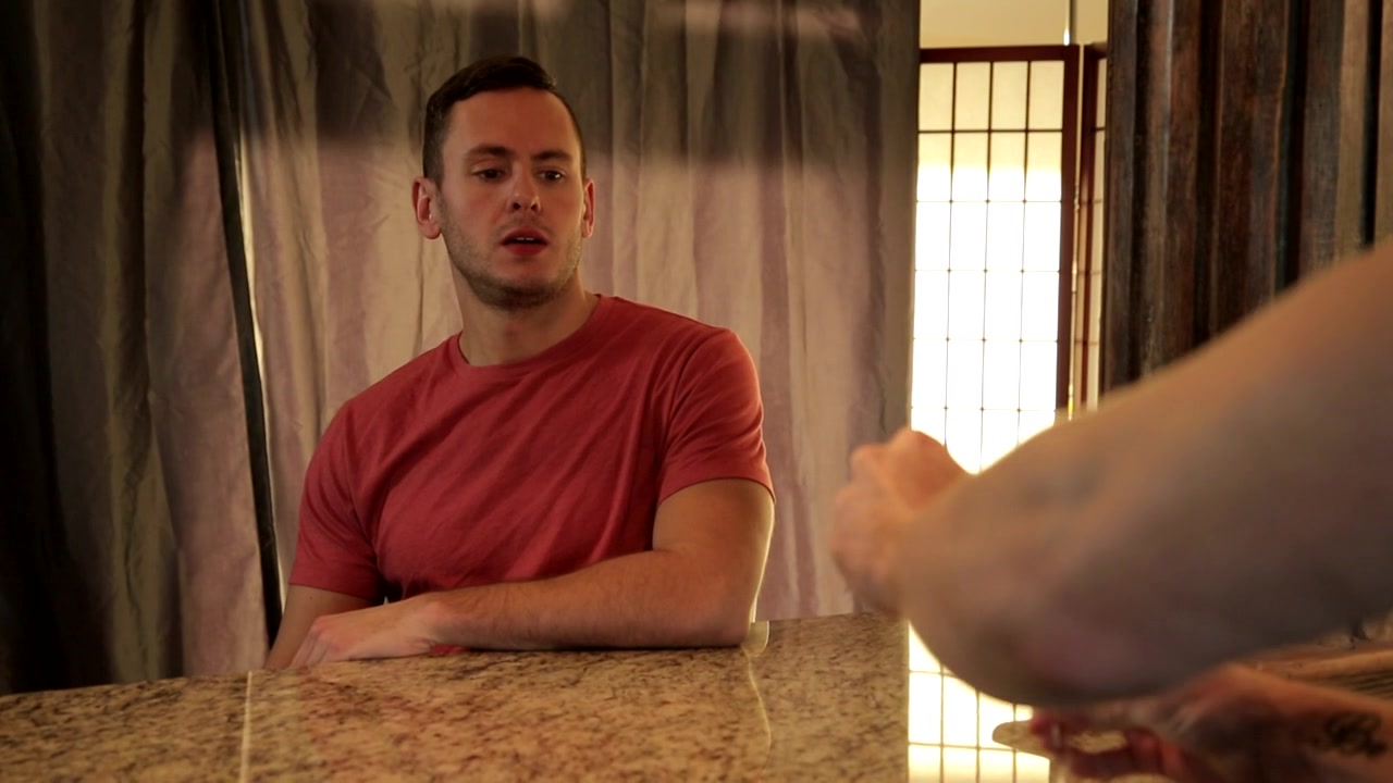 Brenner Bolton likes this local haunt because it’s usually pretty easy to pick up here, but today the place seems particularly empty, which has him kind of bumming. Luckily, his fortunes turn around when Wesley Woods grabs the stool next to him, and when Wesley begins complaining about his boyfriend being out of town, Brenner realizes he’s got this sad stud right where he wants him. Moments later the two of them are heading back to Brenner’s place for a little night cap, as Brenner throws Wesley onto the bed. Wesley is a bit hesitant at first but before he can protest Brenner already has his pants off and his dick in his mouth. Wesley closes his eyes as Brenner gives him some very inspired head, deep throating this broken-hearted stranger as he positions himself for 69, hovering over Wesley’s face as he grinds his ass on Wesley’s mouth. Wesley tongues him nice and hard but Brenner is more interested in Wesley’s big hard cock, so he mounts this stranger raw and goes to town, riding him reverse cowboy as he bounces up and down on it. Wesley then flips him over and they go at it missionary, as Brenner strokes himself while Wesley pounds away, fucking the cum out of Brenner who wets his stomach befroe pulling out and blasting this stranger with his much needed release, before shoving his cock right back into Brenner’s waiting ass for round 2.