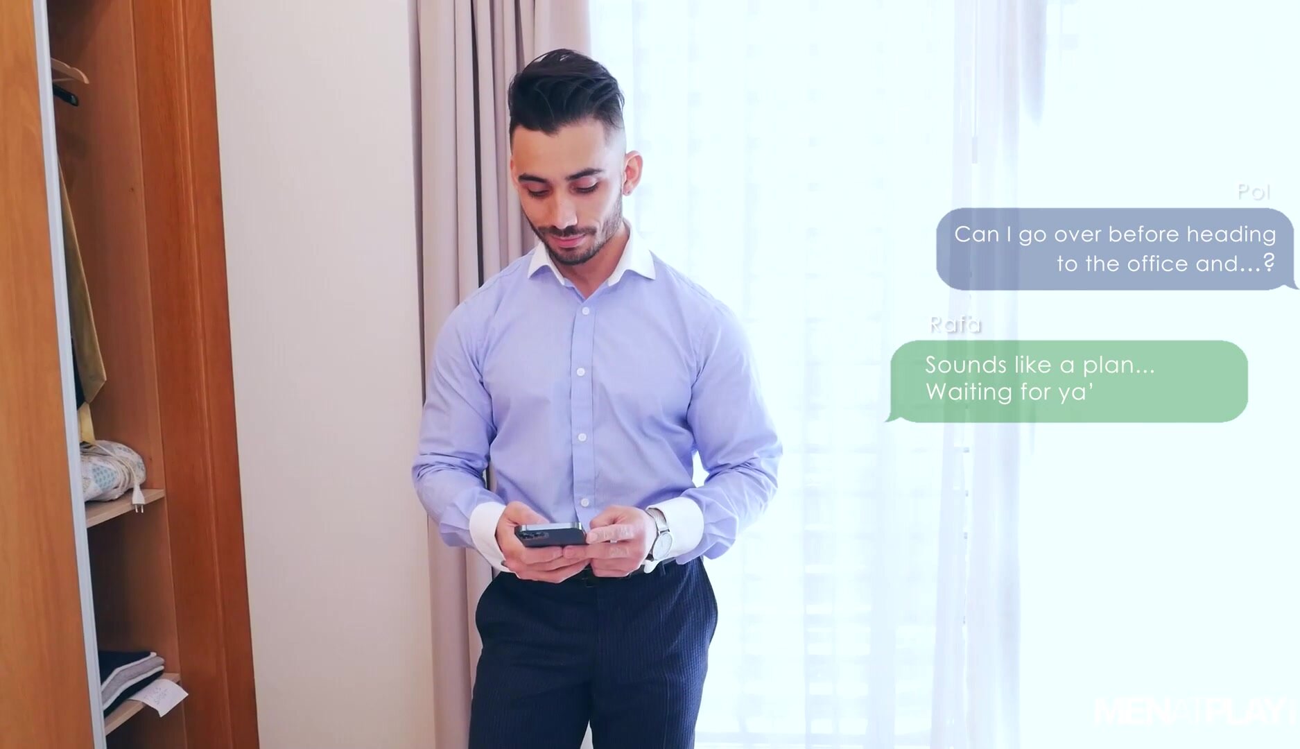 Rafael receives a text from Pol that he's making a drop by before going to work for a quick play session. When he arrives, the two horny boys get right to it. Pol is so sexually excited that he rips Rafael's trousers and eats and fucks his perfect ass.