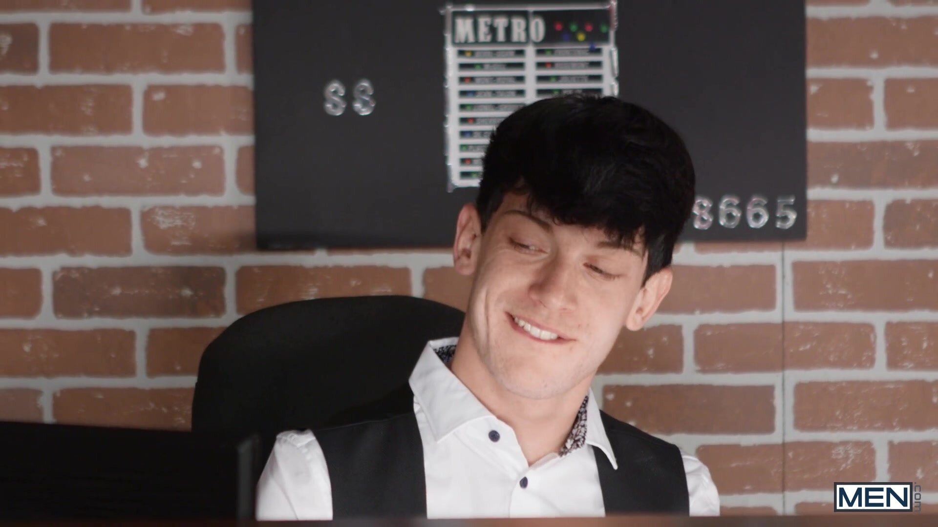 Bike messenger Malik Delgaty has everyone in the office staring at him when he comes in wearing only a small tank top and short shorts! All the guys ogle his big muscles and his impressive bulge and ask to touch his shirt, and Malik decides to show off a little bit. Boss Lev Ivankov is really into biking, and he's even more into sucking Malik's big cock! Malik bends the boss over the reception desk and fucks him doggystyle, then undresses him as the slim bottom rides him on a chair. Malik picks up Lev's legs to fuck him as he hangs off the edge of the desk, then puts him on the floor to penetrate that ass in missionary before he cums on the boss's face!