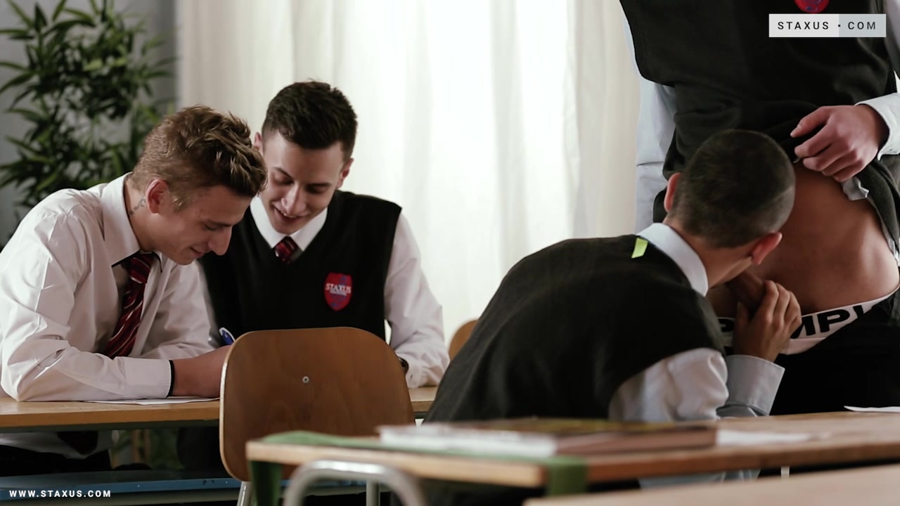 How we must all wish that we’d had a teacher like Sam Williams when we were at school. Not only is he an extremely sexy dude – as everyone who’s seen him in action prior to this point will surely tell you – but his educational techniques are ... well, how can we put it? Somewhat unconventional? Progressive? Judge for yourself, as he takes charge of a small group of students – Alan Benfelen, Darko Simic, Ryan Olsen and Jace Reed – and quickly takes the opportunity to demonstrate a blow-job on Olsen’s dick in front of the class.