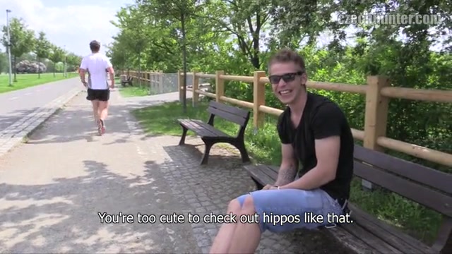 I had to take care not to get hit by one of those reckless rollerblading guys. Several of them would have fit my fantasies today… but they just all went too fast Finally I spotted the perfect catch. A young guy with blond hair. Well-built and – as I found out – working part-time in a call center as a sales agent. His job sounds not too spectacular, I know. But as it wasn’t well-paid I decided to take the risk. His looks turned me on so much… I had to try it. And after a whole while I talked him into comparing our dicks. A few minutes and a few thousand Crowns later he had my dick in his mouth. But how far would he go? Would he allow me to pop his cherry as well? I was up to fuck a rollerblading callcenter-guy’s ass today…