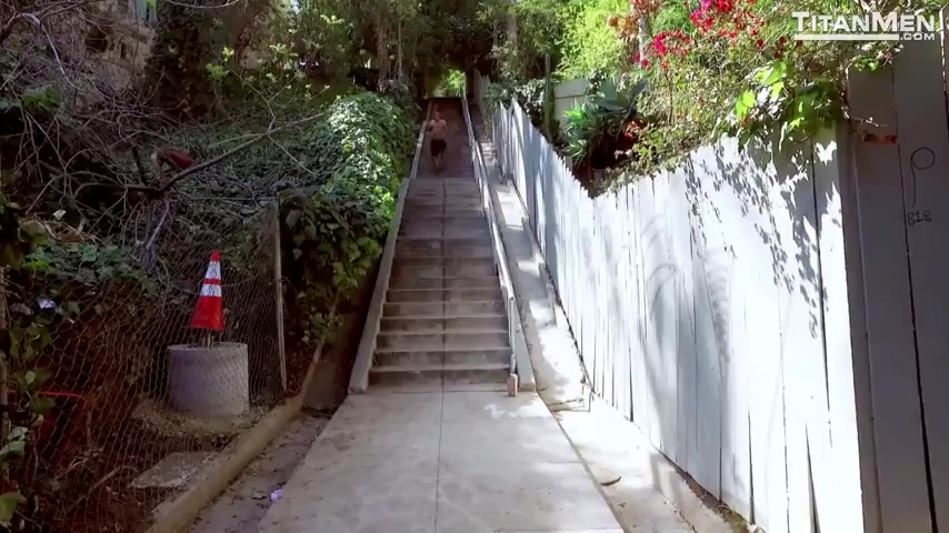 Mark Rollins (David Benjamin) has arrived back in his hometown of Los Angeles and his old neighborhood of Silverlake. Famous for its hills, valleys and 52 sets of staircases that connect them. Mark jogs up the famous Micheltorena Stairs, passing a hot, tattooed, red headed Bennett Anthony. The two share a quick moment that turns into a game of cat and mouse as Bennett leads Mark though the winding streets and narrow passageways until they arrive at Bennett’s apartment. “I love gingers” exclaims Mark as he buries his face in Bennett’s hairy ass. The tiny apartment is full of sweat, muscle and sexual energy that a quick fuck with a stranger you only just met. Bennett bends Mark over a folding chair and slides his dick into his waiting hole. A rough fuck is just what Mark needs and Bennett is more than willing to give it to him. Moving over to the army cot that serves as Bennett’s bed, Mark slides his hole down on that stiff fire crotch, bouncing up and down, dripping with sweat and showing off the ripped muscles on his legs, chest and back.
