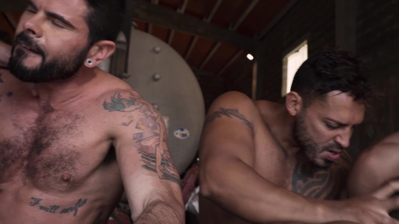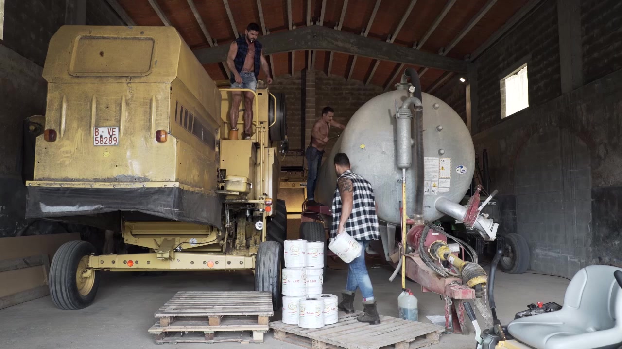 There’s a lot of work going on around the farm: Viktor Rom, Mario Domenech, and Alex Kof are hard at work making repairs to the equipment. Alejandro Castillo brings Jacen Zhu over to the equipment garage to offer everyone some water. But it’s his throat and ass the guys are interested in, and each guy gets his turn with Jacen. At 4:50 you can see Jacen working on all of the uncut cocks as he gets his ass licked. And at 7:45 the fucking begins with Alex raw-dogging Jacen while he makes out with Alejandro and Mario sucks his hard-on. Viktor is close behind to be the second to plow Jacen bareback - Alejandro Castillo, Alex Kof, Jacen Zhu, Mario Domenech, Viktor Rom