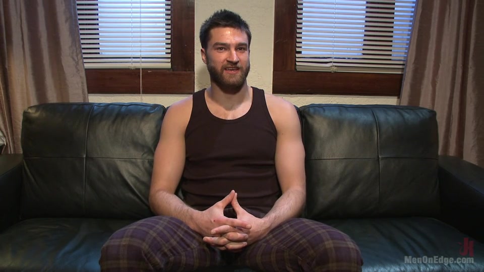 Bound Abel Archer Cums w/o Even touching his cock! 2015 It's a friday night here in San Francisco and we have Abel Archer joining us for our Live Men on Edge. After we chat with the members, Abel's taken to the living room, stripped down to his underwear as Sebastian starts tying him up and teasing Abel's eager cock. Before long Branden Forrest joins in on the fun, whipping out his big 9 inch dick as Sebastian shoves both cocks in his mouth. Our bound stud is suspended in a hogtie as we fuck Abel from both ends with dicks on sticks. Over on the couch we bend Abel over to swallow more cock while the Shockspot fucking machine drives into his hole. While sucking on Abel's toes we jack his cock off and bring him right to the edge before shoving a vibrator up his ass. The intense vibrations are too much for Abel and without even touching his cock he shoots a massive load onto his stomach.
