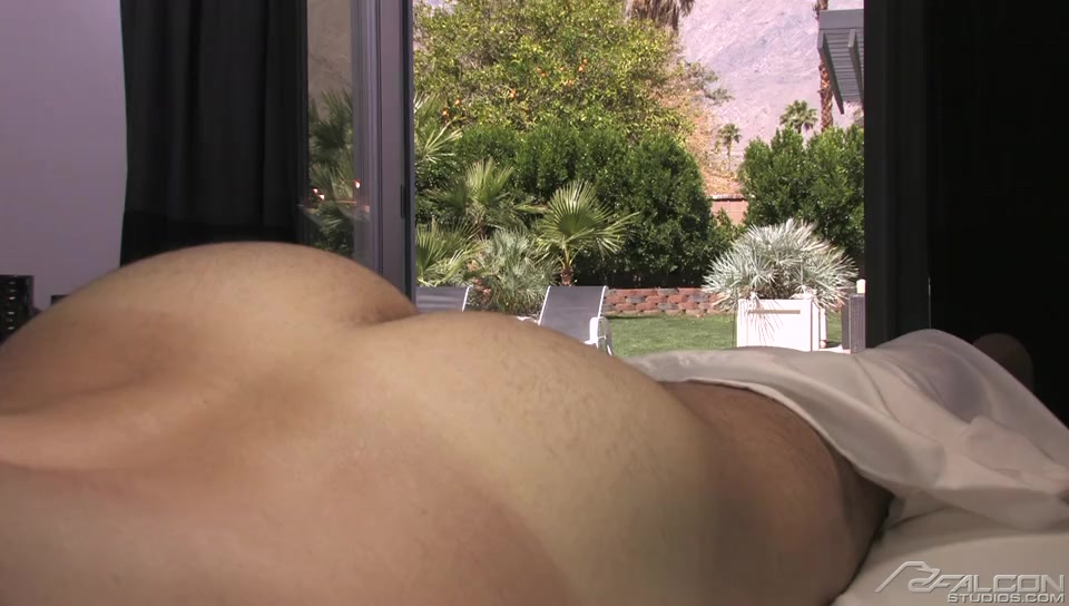 Looking as statuesque as always, D.O. steps out of the pool, his clinging swim suit revealing the contours of his huge cock. It's steadily growing as he eyes Dean Monroe, who's sleeping just inside the house, his tasty British butt issuing an invitation D.O. can't refuse.
