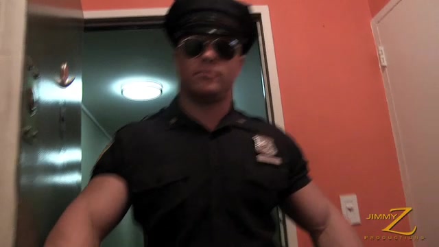 Policeman Gino Del Vecchio searches a home for drugs but the homeowner can't take his eyes off the cop's huge biceps bulging from his uniform. Gino doesn't find anything illegal but does find that he likes showing off his muscles. He opens up his uniform revealing his juicy pecs and nips. He knows the homeowner wants to see more of his hot body so he puts on a thong that highlights his round bubble butt and hungry hole. Gino gets so turned on by his flexing and posing that he strokes his cock for some needed relief.