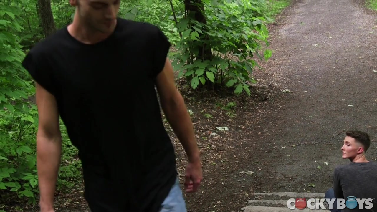 Peter doesn't go cruising, but he has thought about it. So, Cocky Boys makes that sex fantasy come true for him courtesy of Cory Kane. They meet in a park and find a tree where they kiss...and that's all Peter needs. He brings Cory home where they go right back to kissing without any chit chat. They play with each other's bodies and yet they stay clothed during extended foreplay, even as Peter aggressively pushes Cory on the bed. Peter is the dominant force here deciding when to pull out Cory's giant cock and service him with a big smile on his face.
