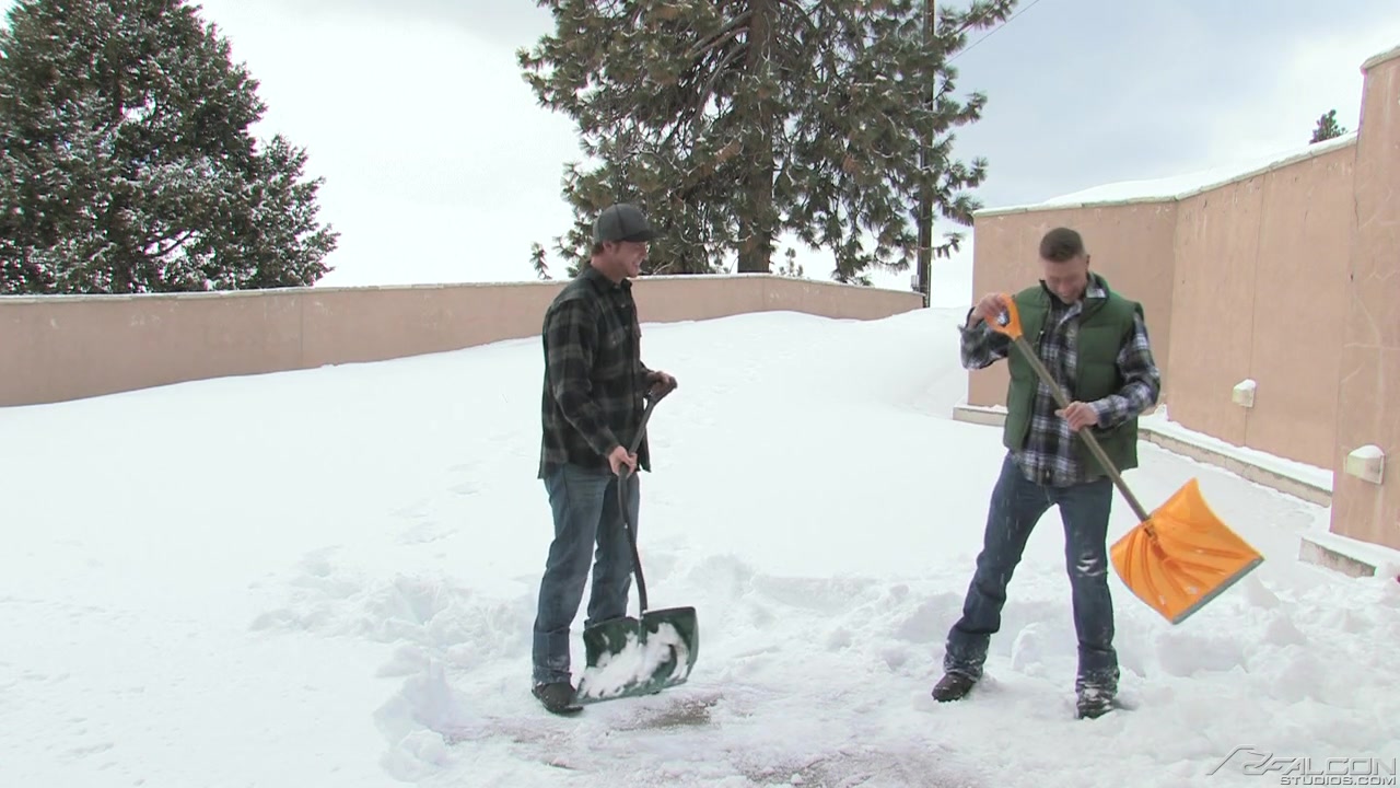 Connor Maguire and Johnny Ryder are resort staffers who keep the roads and footpaths clear of snow. An exhausting day of snow removal and some playful wresting in the powder gets them horny as heck. They can’t wait to get home and play naked with each other. Once there, Connor’s lips work magic on Johnny’s long shaft. Then, Johnny shows he’s no slouch at sucking. Their willing bodies are unwaxed, their muscles hard, their nipples at peaked attention. Johnny expands his territory by nuzzling Connor’s taint with his nose, sucking his balls and lashing his tongue at Connor’s hole like a shovel throwing snow. Not to be upstaged, Connor swaps positions and gives Johnny’s meaty buns a taste of what tongue feels like, upping the ante with his cock. Johnny’s body flexes and swells as he prepares to be penetrated, telling Connor to “stick it in.” Fucking, they generate enough heat to melt the snow they’re paid to shovel. Connor gives Johnny’s buns a pounding that makes his muscles ripple all the way from hip to shoulder. As climax overtakes them, they separate and sit thigh-to-thigh, squeezing out cum shots that leave the slopes of their torsos as white as the mountain slopes.