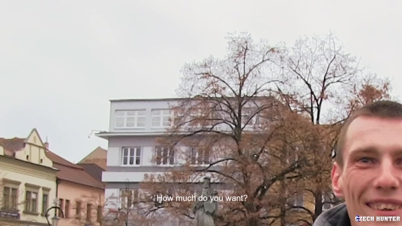 I couldn't pick a worse time, and place to go hunting. I travelled to a small town not far from Prague but the weather turned against me before I got there. The place was absolutely deserted and de-pressing. I put the camera on to make some footage. To my surprise, I noticed a tall and good-looking guy coming my way. I approached him and it turned out he was in the mood for a little talk. He came to Prague from Slovakia to look for jobs and one of the interviews took place at this small town. He was tired of looking for work and wanted to have fun tonight. Not the sort of fun I was looking for but we managed to make a deal. I was the one who would get entertained first and then he could have fun with my money. He was pretty easy to convince, I simply paid to get what I want.