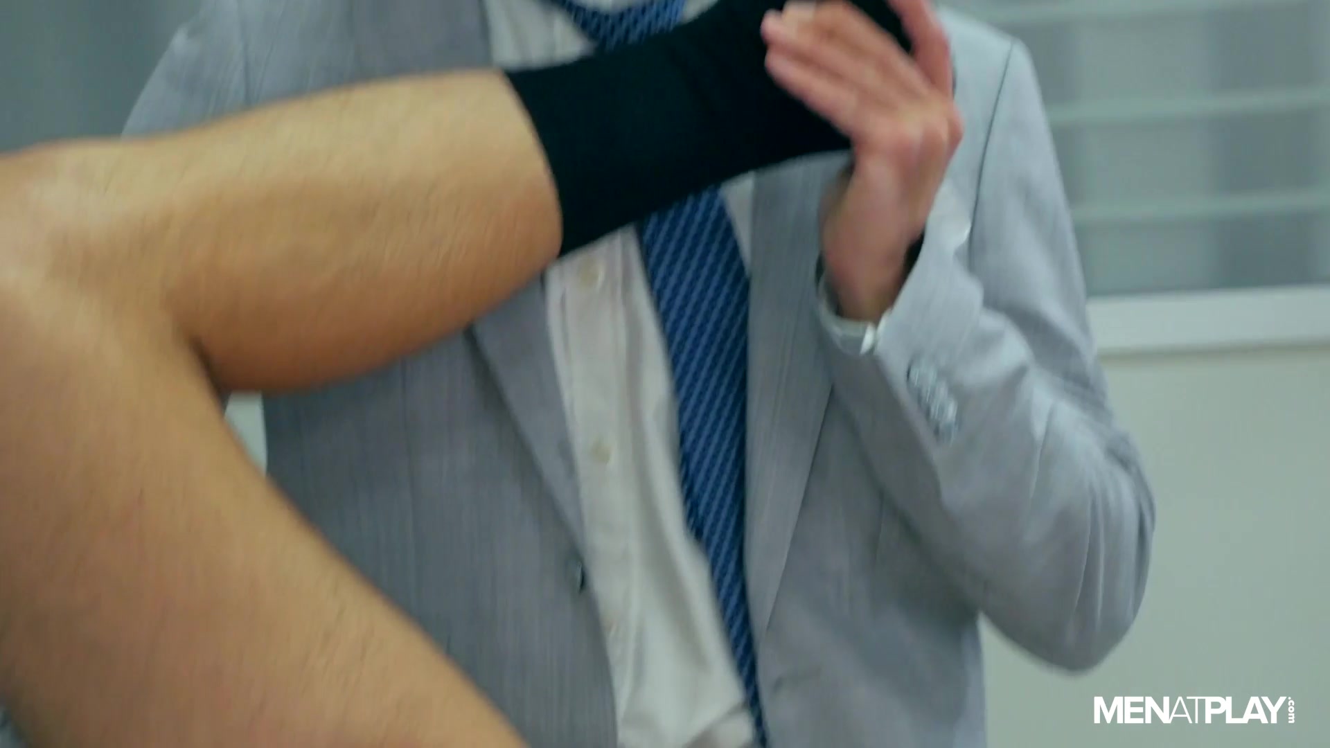 Approaching Vadim, Robbie grabs and plays with his massive cock through his pants until the professor finally succumbs to his advances and orders him to “unzip”.