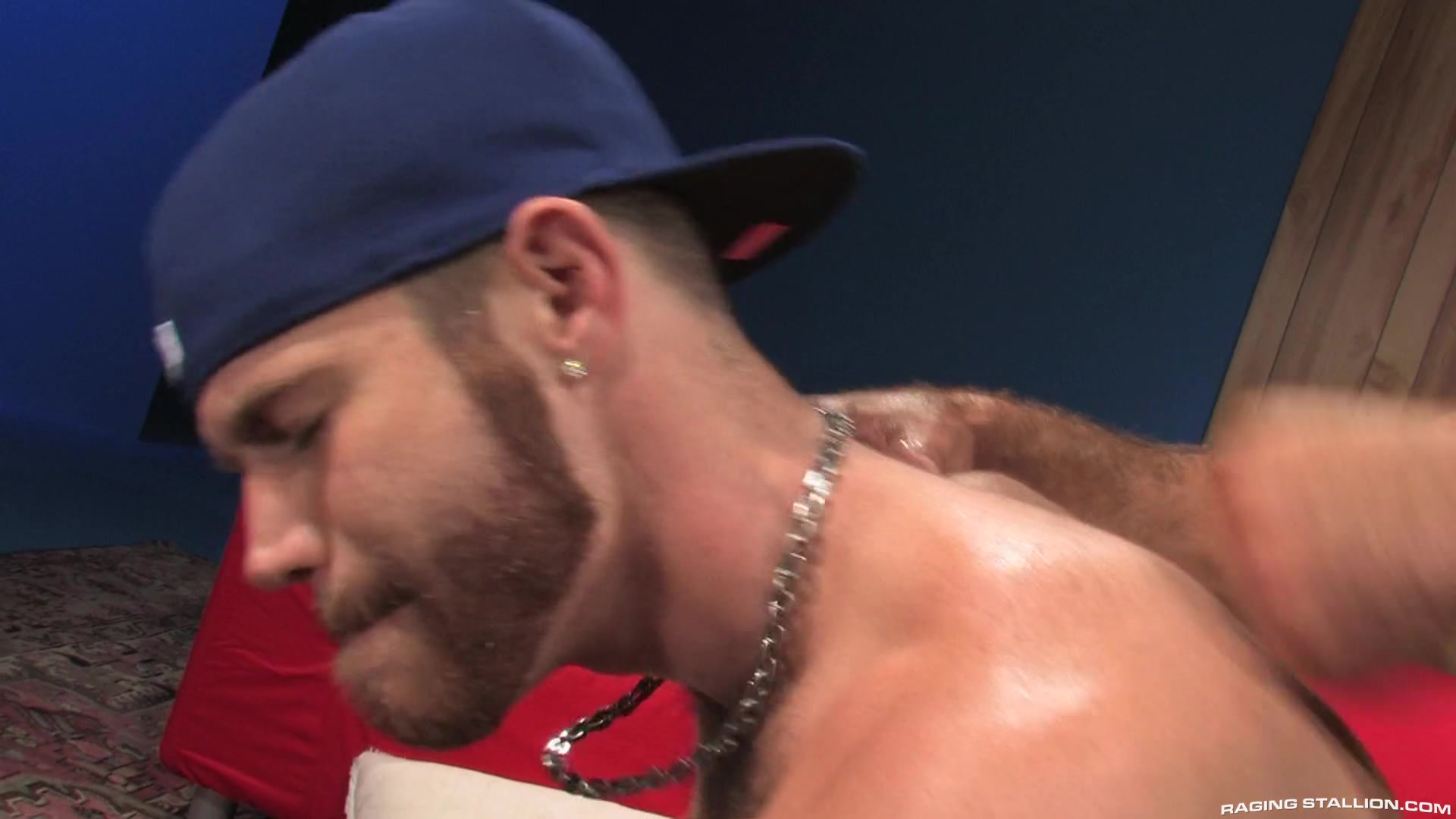 Propped up in front of the TV, Trent Locke and Damien Stone try outplaying each other in an old-time video game. They zig and zagcranking their joysticks and scoring points. But when the going getstough, things get rough. Not wanting to get his ass kicked, Trent stopsplay which pisses Damien off. The two competitors startroughhousing and all that wrestlin' around quickly has both menforgetting the video game challenge. Horizontal on the oriental, theykiss and rub all over each other before Damien pulls Trent's shortsdown to start sucking his personal joystick. They trade places andTrent gets busy gobbling up every inch of Damien's meaty rod. Thingsget kinky when Damien tries sliding one of the actual joysticks upTrent's rear end but that isn't good enough. So moving right behind,Damien slams his big cock up Trent's ass and fucks him hard. Theytwist into different positions and screw even harder. Trent is busywanking his crank until he finally cums and Damien finishes himselfoff by hand and shoots his buddy right in the eye with his load.